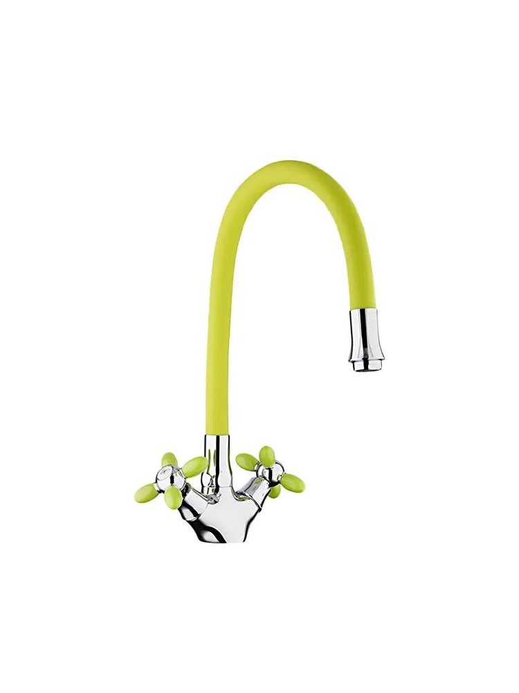 Оцените эргономику и стиль для вашей кухни с гибким двуручным смесителем зеленого цвета – решение, сочетающее практичность, современный дизайн и яркий акцент в интерьере. Подходит для кухонных моек всех типов и облегчает любые кулинарные задачи благодаря гибкому изливу.