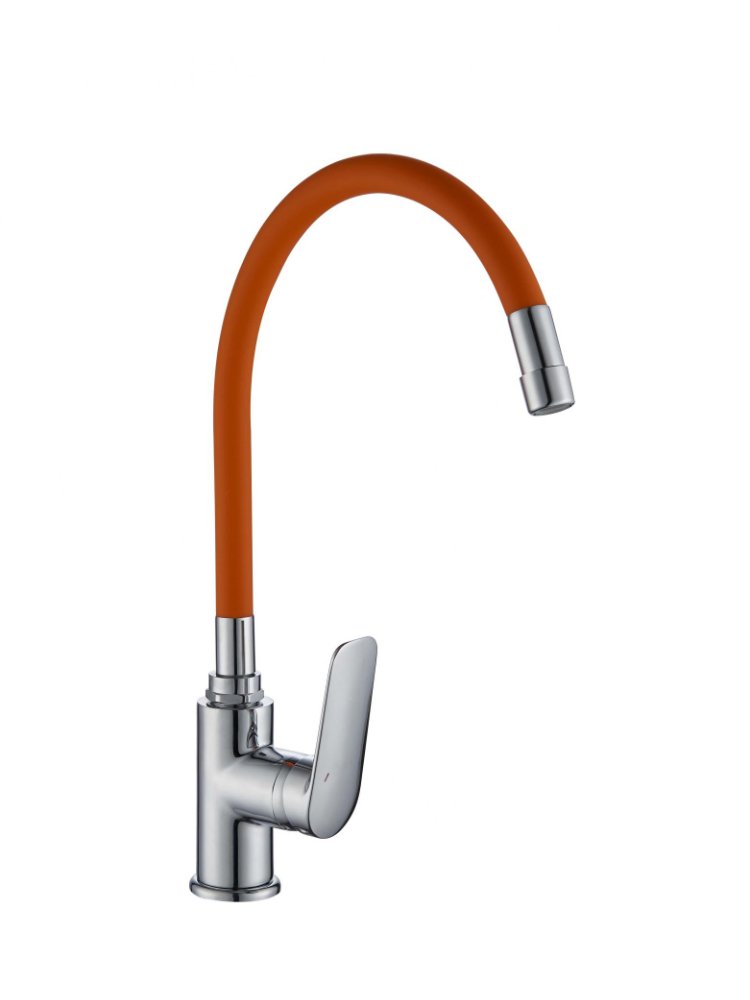 Освежите интерьер кухни с современным смесителем с гибким оранжевым изливом — практичное и стильное решение для жилых и коммерческих пространств.