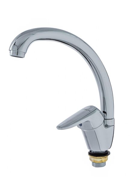 Надёжный однорычажный смеситель с высоким изливом для кухни, керамический картридж, простая установка, износостойкий корпус.