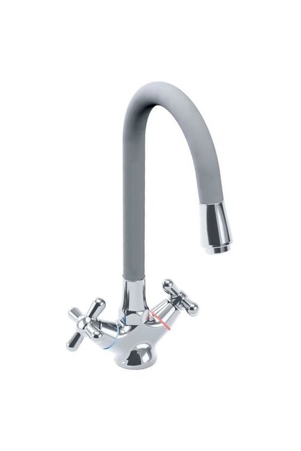 Смеситель д/кухни, SWES EXTRA двуручн., серый силик.излив 2XKEB3 в Солнечный