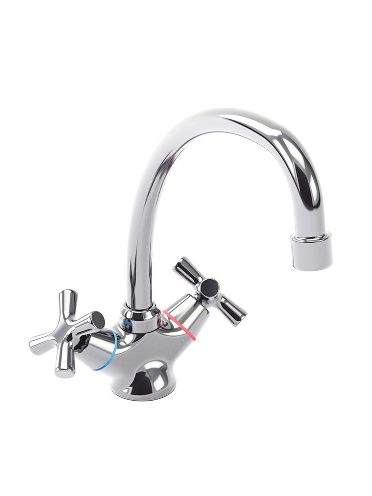 Двухвентильный смеситель SWES RESTA 2RKEJ1 — идеальное решение для кухни, сочетающее надежность, долговечность и стильный хромированный дизайн. Подходит для организации системы водоснабжения в бытовых или коммерческих кухнях, легко монтируется благодаря классическому настольному креплению.