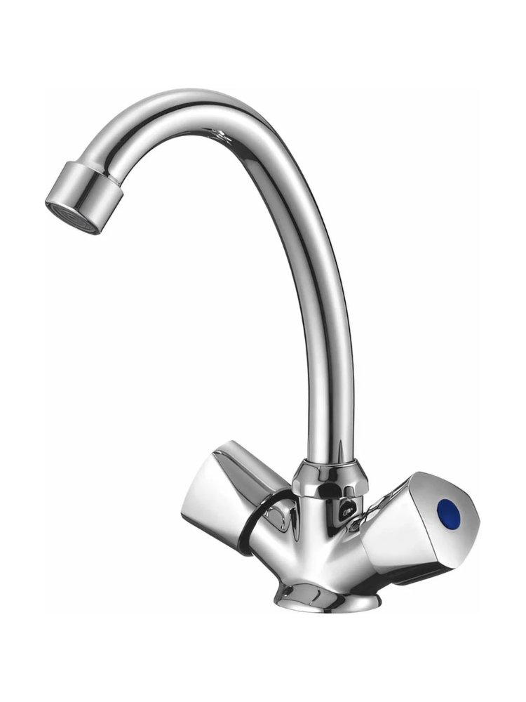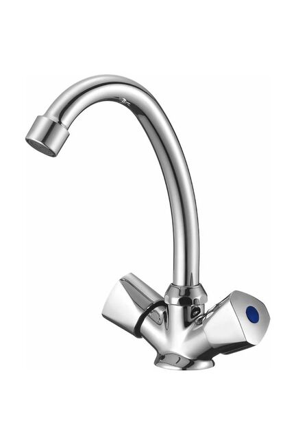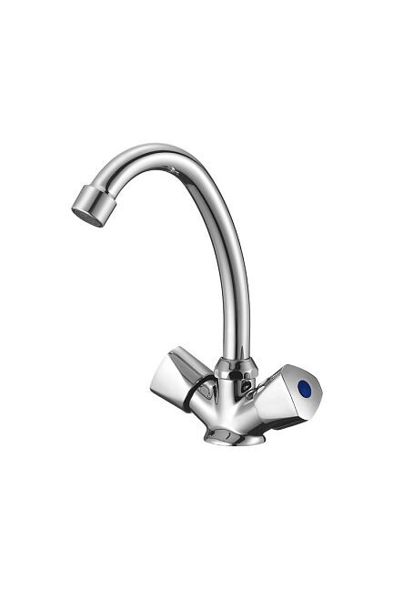 Двухвентильный смеситель из латуни с хромом для умывальника, поворотный излив, аэратор, устойчивая работа и лёгкая установка.