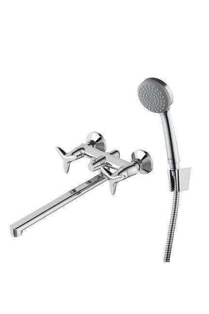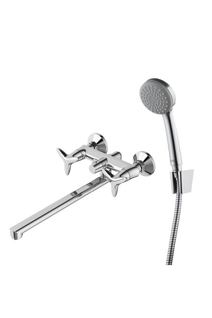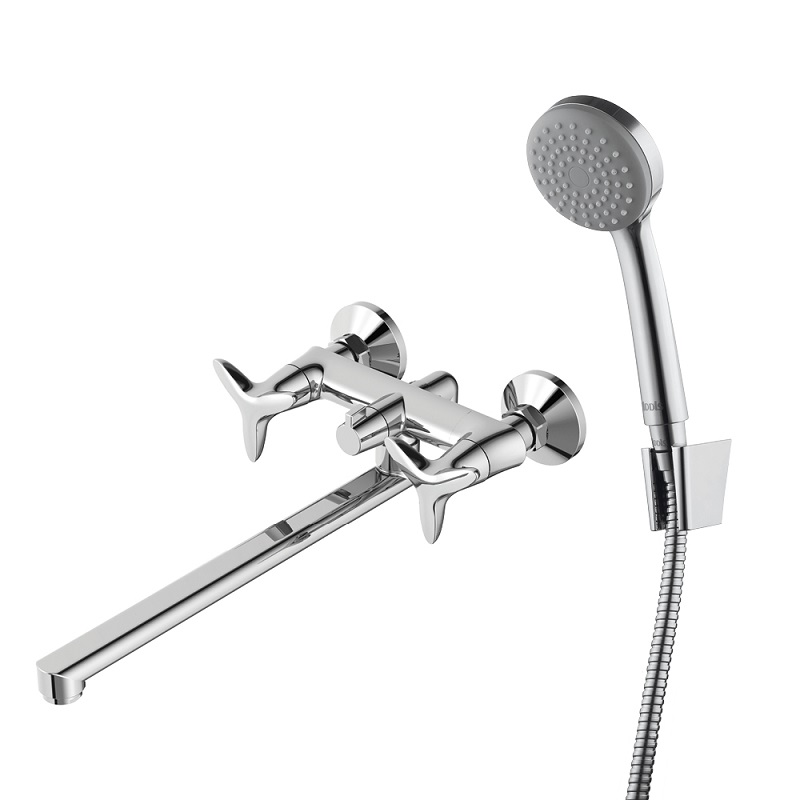 Двуручный смеситель для ванны с латунным корпусом, хромированием, изливом 30 см, керамическим картриджем и без душевого комплекта.