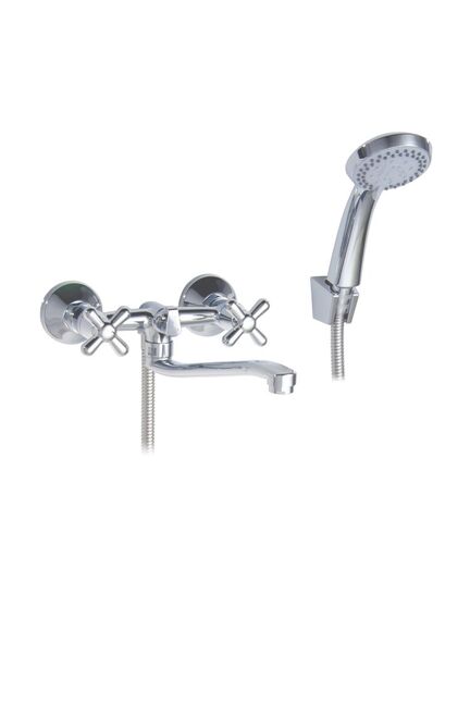 Двухрычажный смеситель, излив 20 см, прочный латунный корпус, надежные кран-буксы, точная регулировка, универсален для ванной комнаты.