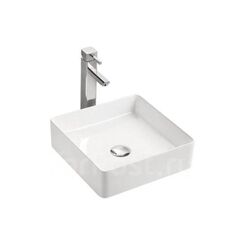 Компактный умывальник 355×355×120 мм, керамика, белый, накладная установка, стильный дизайн, прост в уходе, подходит для любой ванной комнаты.