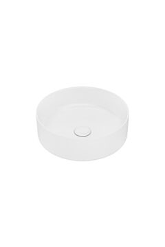 Компактный умывальник 355×355×120 мм, керамика, белый, накладная установка, стильный дизайн, прост в уходе, подходит для любой ванной комнаты.