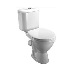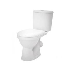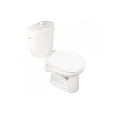 Компактный унитаз с косым выпуском, двойным смывом и прочным сиденьем идеально подходит для стандартных санузлов квартир и домов.