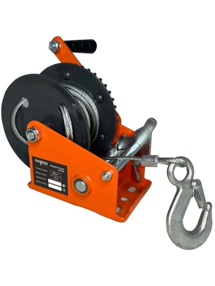 Ручная барабанная лебедка с тормозом Magnus Profi LRT-500, 500 кг, канат 10 м SZ059377 используется при выполнении монтажных и ремонтных работ, ремонта транспортных средств, является вспомогательным средством для вытягивания застрявших автомобилей и грузов. Надёжная ручная лебёдка с тормозом, грузоподъёмностью 500 кг и канатом 10 м для безопасного подъёма и перемещения грузов на строительстве и в гараже.