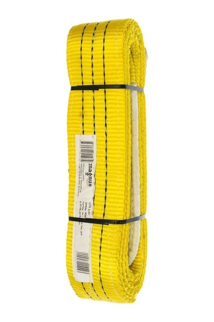 Строп текстильный петлевой (СТП) Magnus Profi – съемное приспособление ленточного типа для подъема грузов. Изготавливается из широкой полиэстеровой ленты и двух петель по краям из этого же материала. Тканевая лента является несущим элементом стропа – именно на нее приходится основная нагрузка при подъеме и перемещении груза. Строп 3 т, длина 5 м, ширина 90 мм. Для строительных, монтажных и складских работ. Прочный, безопасный, устойчив к маслам и износу.