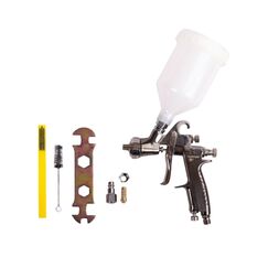 Диаметр дюзы: 0,8 мм. Рабочее давление: 2,0-3,5 атм. Расход воздуха: 70-95 л/мин. Ширина окрасочного факела: 100-150 мм. Размер входного штуцера: 1,4 дюйма. Объем бачка: 0,12 л. Конструктивные особенности: Дюза из нержавеющей стали. Пластиковая емкость для ЛКМ. Регулировка подачи воздуха и ЛКМ. Регулировка ширины красочного факела. Корпус из алюминиевого сплава. Эргономичная конструкция и малый вес. LVLP-распылитель: точное нанесение, минимальный расход, бачок 600 мл, сопло 1,3 мм, давление 1,5–2,5 бар. Для ремонта и декоративных покрытий.