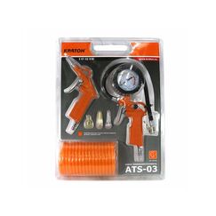 Набор из 4 предметов. Пистолет промывочный. Пистолет продувочный. Пистолет для подкачки шин с манометром. Шланг спиральный. Комплект из 4 пневмоинструментов для покраски, продувки, подкачки шин и очистки с удобным 5-метровым шлангом и простым быстросъемным подключением.