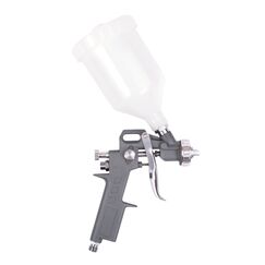 Диаметр дюзы: 1,5 мм. Рабочее давление: 4,5-6,0 атм. Расход воздуха: 120-200 л/мин. Ширина окрасочного факела: 180-250 мм. Размер входного штуцера: 1,4 дюйма. Объем бачка: 0,6 л. Конструктивные особенности: Дюза из нержавеющей стали. Пластиковая емкость для ЛКМ. Регулировка подачи воздуха и ЛКМ. Регулировка ширины красочного факела. Корпус из алюминиевого сплава. Эргономичная конструкция и малый вес. Компактный распылитель для точного и равномерного нанесения краски, с баком 130 мл и регулируемым факелом — удобно для отделочных работ.