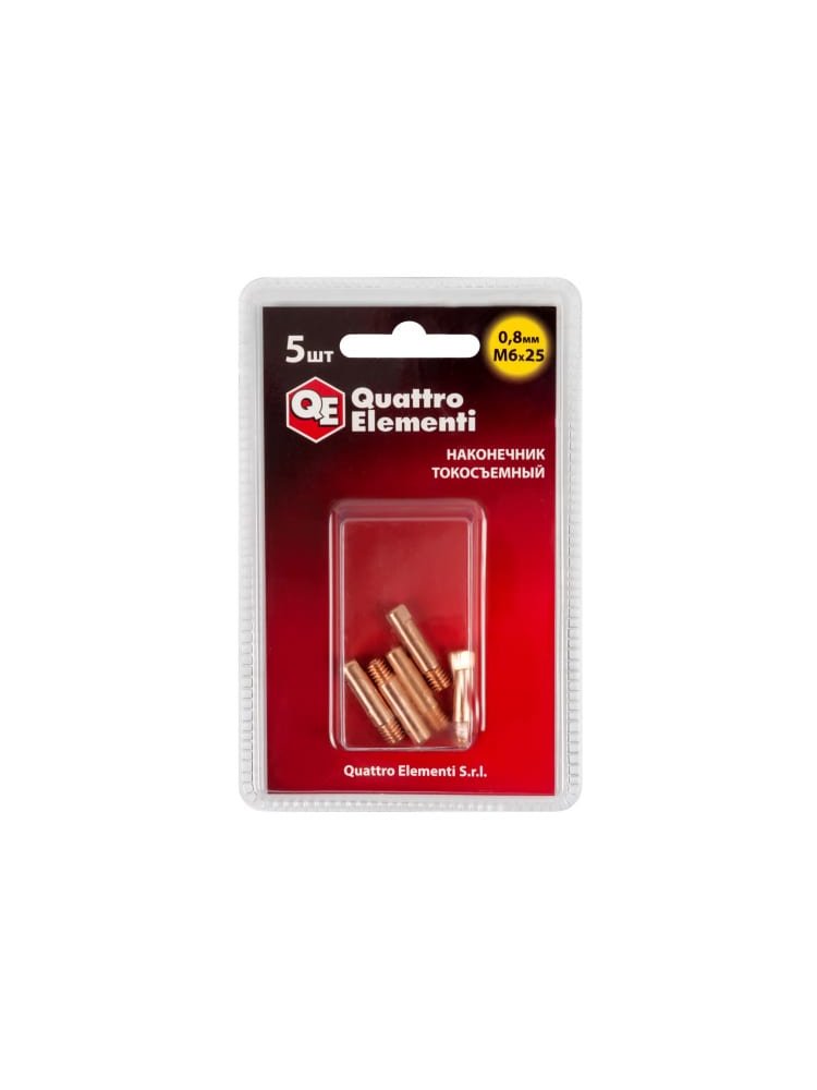 Наконечник токосъемный QUATTRO ELEMENTI M6x25, 0,8мм (5 шт)