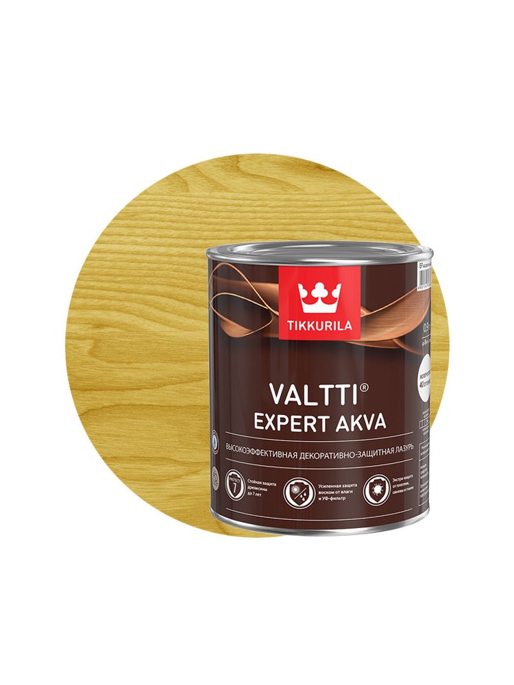Надёжная защита и привлекательный внешний вид вашей древесины – вот что вы получаете с водоразбавляемым антисептиком полу-глянцевым серии VALTTI EXPERT Akva оттенка сосна, объёмом 0,9 л. Средство предназначено для exteriores и интерьеров, где важно не только подчеркнуть текстуру и природную красоту дерева, но и продлить срок его службы.