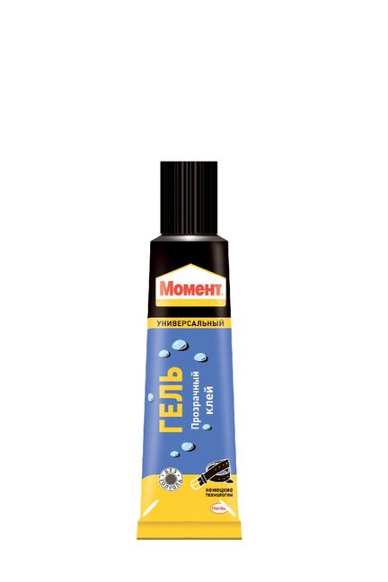Момент Гель- прозрачный гелеевый клей, не оставляющий заметных следов. Предназначен для работы с пористыми и впитывающими материалами. В различных сочетаниях склеивает дерево, металл, резину, бумагу, картон, кожу, ткань, пробку, поролон, фарфор, керамику, стекло, кроме посуды, контактирующей с пищей. Гелевый клей для прочного, аккуратного и быстрого склеивания большинства бытовых и строительных материалов, не растекается и удобен в нанесении.