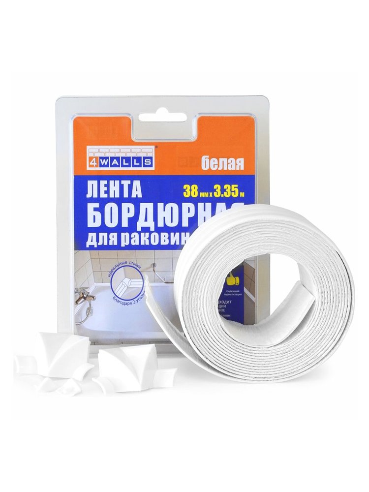 Герметичная бордюрная лента 3,35 м с уголками для защиты стыков ванной и раковины от влаги и плесени, проста в установке, белый цвет.