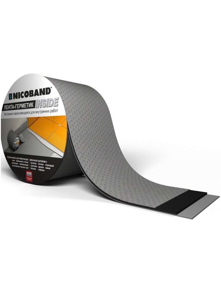 Самоклеющаяся лента марки NICOBAND предназначена для герметизации швов и трещин. Материал представляет собой трёхслойное изделие. Верхний слой – цветное покрытие с УФ-защитой. Средний представляет собой самоклеющийся герметизирующий материал. Нижняя часть – защитная пленка, которая легко отсоединяется. Лента Никобенд нашла широкое применение: материал используют для ремонта кровли, изоляции примыканий и водосточных систем. Изделие отличается хорошим сцеплением с различными материалами, включая древесину, стекло, пластик и бетон. Герметичная лента 10×10 см, устойчива к влаге, УФ и морозу, легко монтируется, отлично подходит для ремонта кровли и защиты швов.