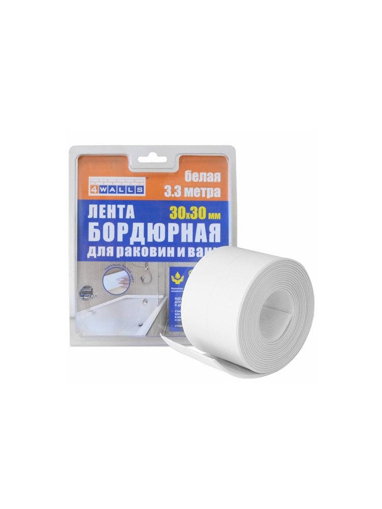 Лента-бордюр 30мм*30мм*3,3м для раковин и ванн, белая