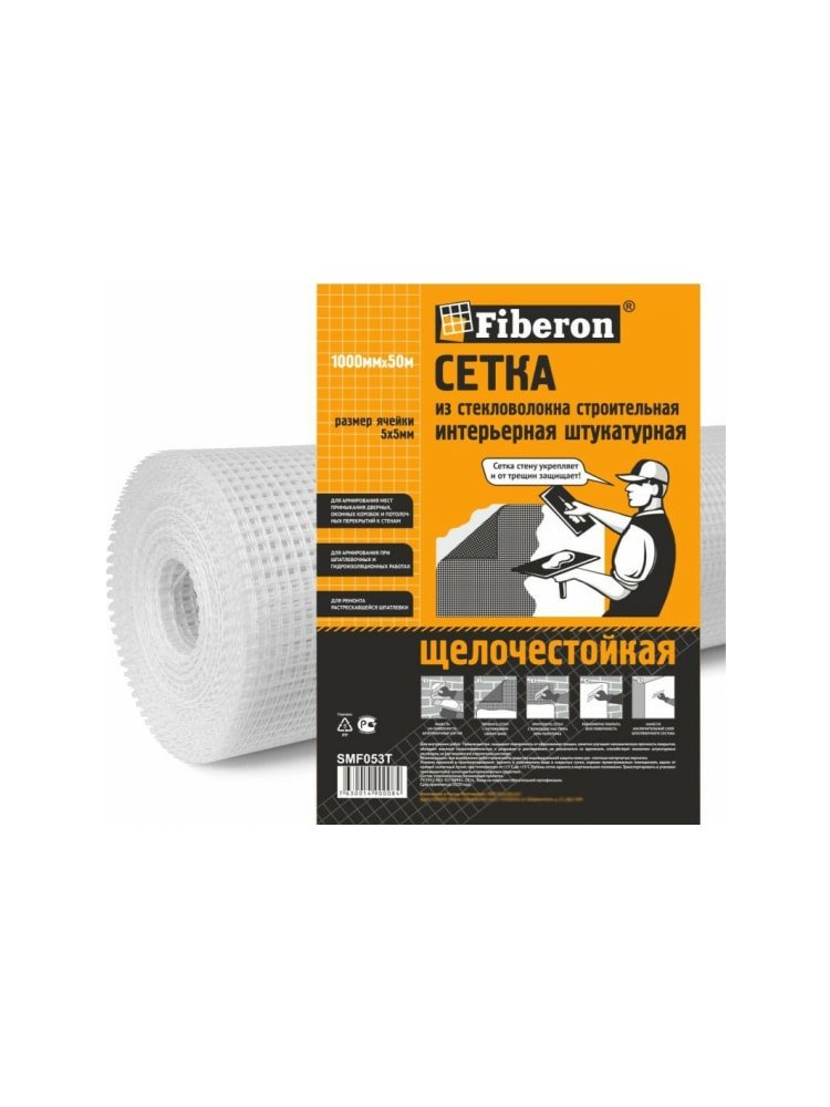 Сетка малярная Fiberon стекловолокно применяется для внутренних работ при финишной отделке, для работ с минимальным количеством шпатлевки: для шпатлевочных работ; для тонкого армирования мест примыкания различных перекрытий к стенам; для армирования при гидроизоляционных работах. Сетка щелочестойкая, не растворяется в отделочном растворе, долговечная, защищает поверхность от образования трещин. Для армирования штукатурки и защиты от трещин. Размер 1х50 м, ячейка 5х5 мм, стойкое стекловолокно, легко режется и крепится.