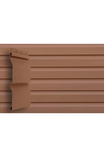 Стильное и долговечное решение для отделки фасадов жилых и коммерческих зданий. Виниловый сайдинг тёмно-бежевого цвета обеспечивает надежную защиту от влаги, ультрафиолета и механических воздействий, а также устойчив к выгоранию и перепадам температур.