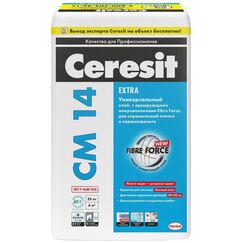 Церезит CM 17 Эластичный клей с армирующими волокнами Фибра Флекс для любых видов плитки Свойства эластичный, устойчив к деформациям; подходит для облицовки каминов и печей, полов саун и хаммамов, поверхности которых не нагреваются выше +80°C; обладает высокой адгезией; водо- и морозостойкий; устойчив к сползанию плитки; может применяться на гипсокартоне и ДСП; идеален для бассейнов и стяжек с подогревом; пригоден для укладки плиток крупного размера; совместим с гидроизоляционными материалами Церезит CR 65, CR 166 и CL 51; пригоден для внутренних и наружных работ; экологически безопасен Эластичный плиточный клей, высокая прочность, подходит для крупной плитки и системы "тёплый пол". Для внутренней и наружной отделки.