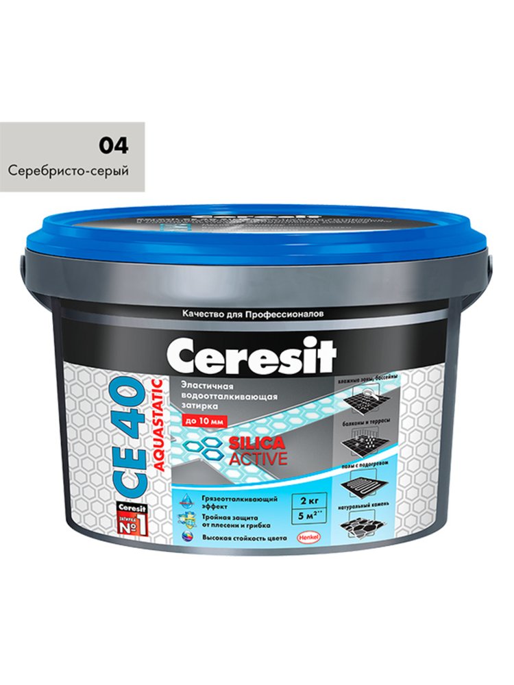 Затирка Церезит CE40 аквастатик 2кг (серебристо-серая 04) в Солнечный