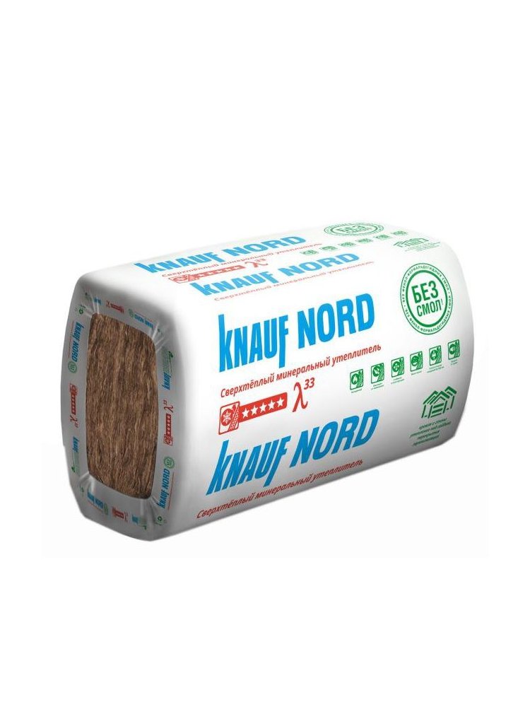 Премиальная продукция КНАУФ НОРД. Плотность 25кг/м Влагостойкий утеплитель для стен и кровли, сохраняет тепло и снижает шум, легкий монтаж, объем 0,45 м³, технология Aquastatik.