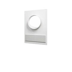 Площадка торцевая пластиковая с решеткой: предназначена для оформления вентиляционных отверстий и присоединения воздуховодов; настенный монтаж при помощи шурупов; материал: полистирол; размеры: высота 24см, ширина 20,5см, раст.между отверстиями креплений: вертик.22,4см, горизонт.18,4см,Φ внутр.отверстия 15см, цвет: белый; Торцевая вентиляционная площадка 180×240 мм с решеткой и фланцем d150 мм для защиты и эффективной работы системы воздухоотведения.