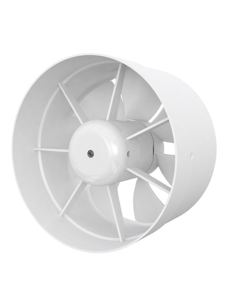 Вентилятор канальный осевой приточно-вытяжной: возможность сопряжения с фланцевыми воздухораспределителями; в зависимости от положения вентилятора в системе возможность приточной или вытяжной вентиляции; внешн.Φ163мм, внутр.Φ160мм, длина 101мм, длина внешн части 35мм; производительность 320мᵌ/час; максимальное давление 65Па/час; напряжение питания 230В; потребляемая мощность 25Вт; уровень шума 38дБ; макс.t работы 40̊C; масса 0,7кг