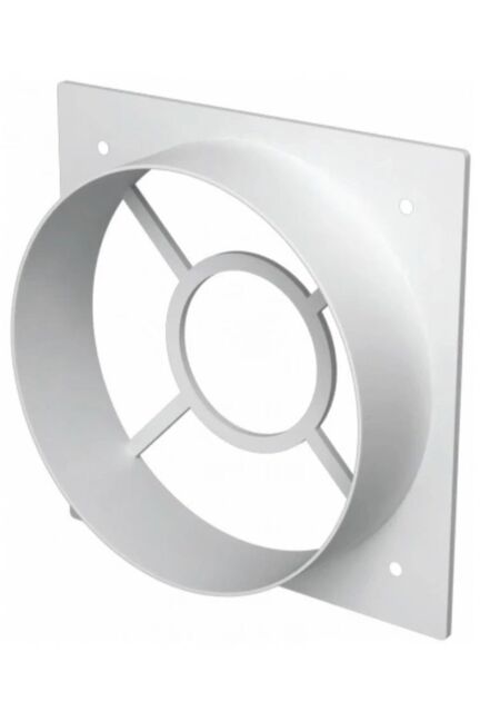 Накладка торцевая с фланцем: настенный или потолочный монтаж; монтируется с воздуховодами; крепление при помощи шурупов; цвет: белый, ширина 113мм, высота 113мм, Φ 100мм, толщина накладка+фланец: 28,5мм, расстояние между креплениями вертик/горизонт. 85мм.