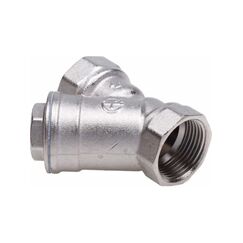 Косой фильтр 1" из никелированной латуни, давление до 16 бар, для холодной и горячей воды, защита систем от частиц и загрязнений.