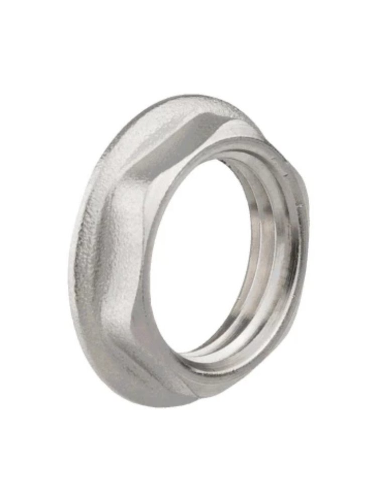Никелированная латунная контргайка Ду 20 для прочного и герметичного соединения трубопроводов, устойчива к коррозии и легко монтируется.