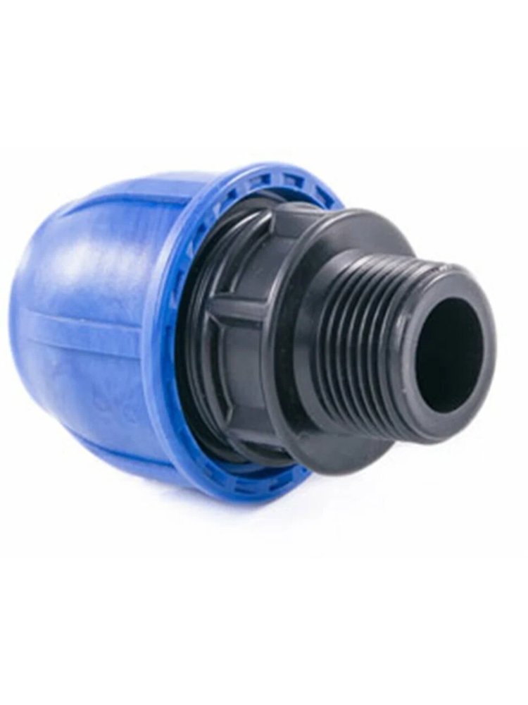 - Диаметр соединения — 32 мм (ПЭ труба), наружная резьба — 3/4''
