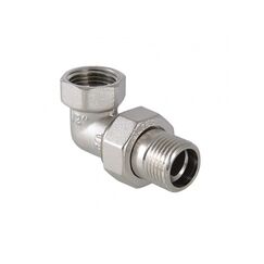 Разъемный никелированный уголок ВР-НР Ду 20 для быстрой и надежной стыковки труб под 90° в водоснабжении и отоплении, устойчив к коррозии.