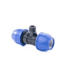 Компрессионный тройник PN16 d32x3/4, для ПЭ труб, надёжное соединение, высокая прочность, герметичность, простота монтажа, устойчивость к коррозии.