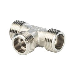 Латунный никелированный тройник Ду 20 ВР для прочных и герметичных соединений в водоснабжении и отоплении, выдерживает до 120°C и 25 Бар.