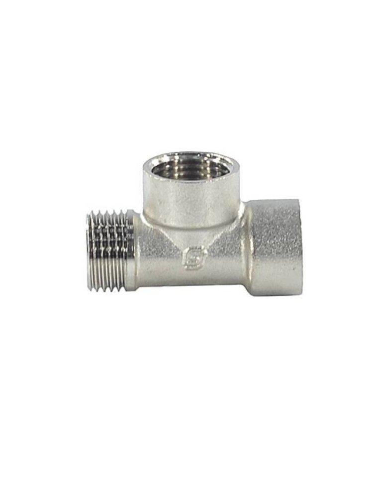Никелированный латунный тройник Ду15 ВР-ВР-НР: надежность, износостойкость, устойчивость к коррозии и простота монтажа для водопровода и отопления.