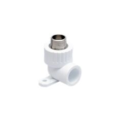 Угол для PPR-труб 32 мм с креплением и внутренней резьбой 1", легко монтируется, прочный, подходит для систем отопления и водоснабжения.