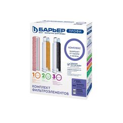 Набор сменных картриджей "Профи Complex" предназначен для замены кассет одноименной трехступенчатой системы фильтрации воды от компании "Барьер" после окончания срока их службы (от нескольких месяцев до 1 года в зависимости от состояния исходной воды). Вместе три кассеты очистят воду от всевозможных загрязнений и примесей, от железа, хлора, тяжелых и токсичных металлов, смягчат воду без эффекта "гиперумягчения", произведут кондиционирование воды, то есть улучшение ее запаха и избавление от неприятного привкуса. В состав набора входят следующие кассеты: "Профи Ферростоп", "Профи Смягчение" и "Профи ПостКарбон", каждая из которых выполняет свою роль в очищении, смягчении и последующем кондиционировании воды. Все сменные картриджи легко устанавливаются и не требуют применения специальных инструментов. Комплексная фильтрация холодной воды, удаление механических примесей, хлора и металлов. Для квартиры, дома и офиса. Простая установка.