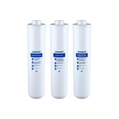 Комплект сменных модулей глубокой очистки. Оптимален для мягкой воды. В условиях жесткой воды он полностью выполняет функцию глубокой очистки от вредных примесей, однако не снижает минерализацию. Поэтому, если при кипячении на нагревательных элементах образуется белый налет, рекомендуем рассмотреть специализированный комплект с умягчающим модулем для глубокой очистки воды. Эффективное решение для многоступенчатой очистки воды от механических примесей, хлора и запахов. Ресурс — до 6000 л, удобная замена.