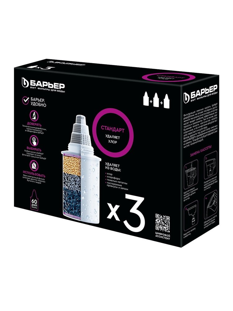 • Экономичная упаковка — три картриджа в комплекте обеспечивают длительную очистку