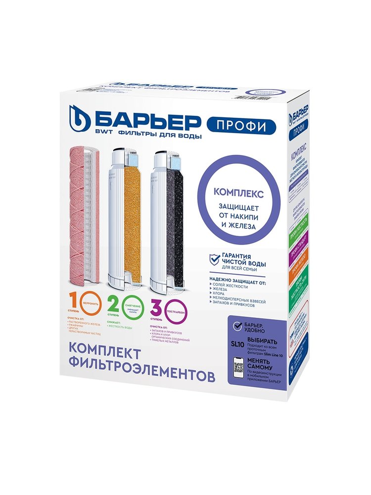Набор сменных картриджей "Профи Complex" предназначен для замены кассет одноименной трехступенчатой системы фильтрации воды от компании "Барьер" после окончания срока их службы (от нескольких месяцев до 1 года в зависимости от состояния исходной воды). Вместе три кассеты очистят воду от всевозможных загрязнений и примесей, от железа, хлора, тяжелых и токсичных металлов, смягчат воду без эффекта "гиперумягчения", произведут кондиционирование воды, то есть улучшение ее запаха и избавление от неприятного привкуса. В состав набора входят следующие кассеты: "Профи Ферростоп", "Профи Смягчение" и "Профи ПостКарбон", каждая из которых выполняет свою роль в очищении, смягчении и последующем кондиционировании воды. Все сменные картриджи легко устанавливаются и не требуют применения специальных инструментов. Комплексная фильтрация холодной воды, удаление механических примесей, хлора и металлов. Для квартиры, дома и офиса. Простая установка.