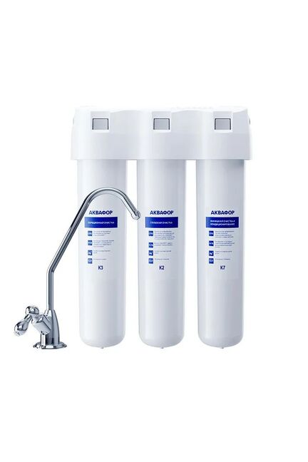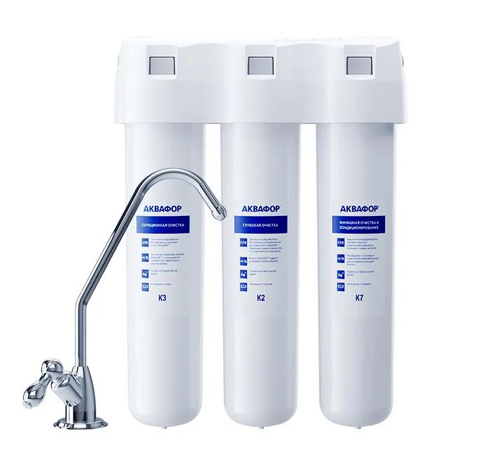 Надежный сорбционный фильтр для базовой очистки питьевой воды, приготовления супов и напитков. Обеспечит глубокую очистку водопроводной воды от целого спектра опасных загрязнений, подходит для мягкой воды. АКВАФОР Кристалл удаляет хлор, тяжелые металлы, пестициды, нефтепродукты и другие распространенные токсины и аллергены, сохраняя минеральный состав воды. Три модуля изготовлены по технологии карбонблок с ионообменным волокном Aqualen, поэтому площадь контакта воды с сорбентами в десятки раз больше, чем у стандартных насыпных модулей, а скорость фильтрации в 4 раза выше. Сорбент также содержит безопасное серебро в отличие от серебрёных активированных углей. Очистит воду от самых распространенных примесей, включая хлор, органические соединения (в т. ч. фенолы), тяжелые металлы, ржавчину, остатки лекарственных средств. Эффективная система фильтрации для чистой питьевой воды из-под крана, служит до 6000 л, не занимает места и просто устанавливается.