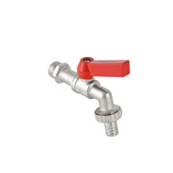 Кран водоразборный с резьбой 1/2", латунь-никель, до 30 бар, для воды, устойчивая ручка, герметичность, долго служит, легко устанавливается.