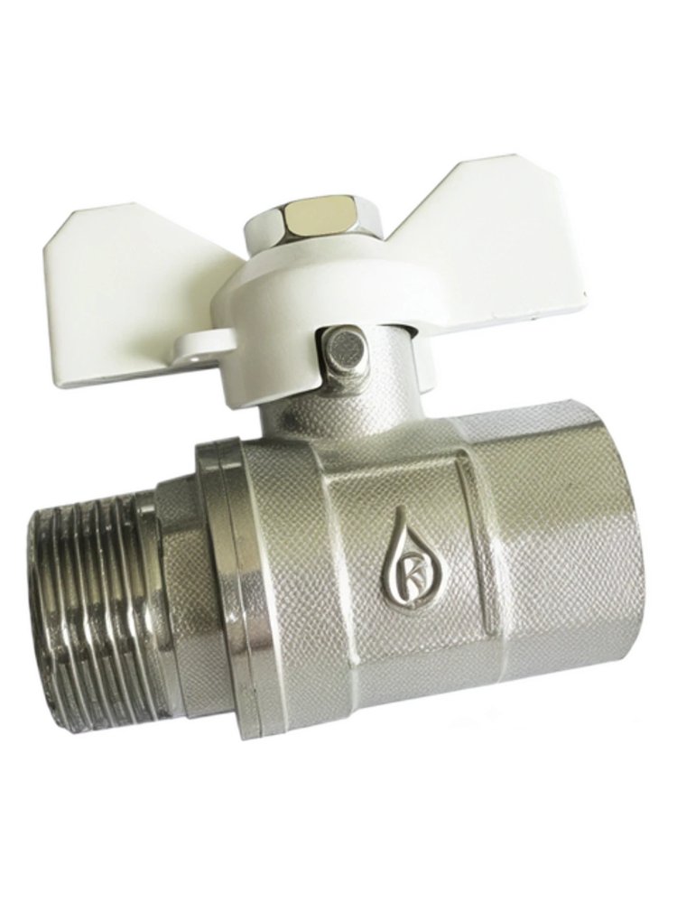 Шаровой кран Ду 25 из латуни с никелированием, ВР-НР, бабочка, для систем водоснабжения и отопления, легко монтируется, выдерживает до 40 Бар.